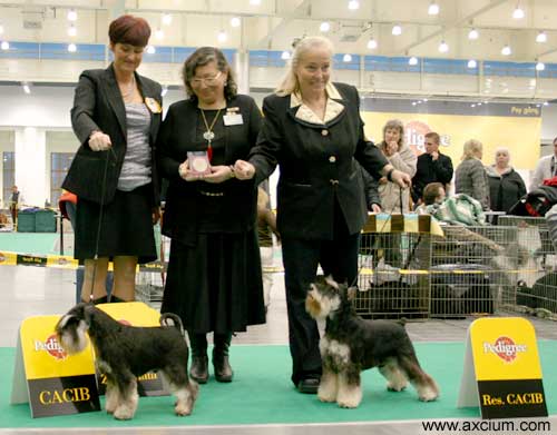 reserve CACIB winner on the right. In the middle: judge Mrs.