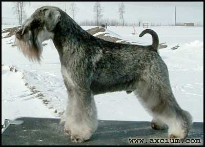 GRAND Ch Axcium's Star Witness Star won a major the first day she was ever shown from the 6-9 month puppy class! She won a puppy-group and puppy BIS in Perry, GA. Her temperament is outstanding, she's short backed and very well balanced. Star is co-owned with the lovely Frederique Schrade in FL. Ch Axcium Mac Link's Kick N Lick Leo took forever to get his championship because he hates dogshows. Contrary to his brother Linus, he would do everything he could to sabotage a win. He is bred by Sussie and Ted Andreasson Weisbach in Sweden, and he's the 4th champion for his dam Ch Axcium's Kickass. Leo is living happily as a retiree in the Georgian countryside. Ch Bravo's Axcium Major Point Kate is the first champion for her dam Ch Axcium's Primadonna. Kate is owned by Donna Hills, Bravo Miniature Schnauzers New Am Ch BALT, EE, LV & LT CH, BALT, EE, LV & LT JCH, TLNJW'13, BALTW-13, EEW-14 Axcium's Excellenzia Ztella must be the happiest, most outgoing dog in the whole world - a natural born showdog! She won a whole bunch of European titles before coming back to the US to get her American championship. Ztella is the third champion for her dam Ch Cheantake Axcium's Extravanganza. She is owned by my good friends Nora Ylikyla and Markku Vuorinen in Finland (Cheantake Miniature Schnauzers). Ch Bravo's Axcium Point Spice was a joy to show and she finished in three weekends with four majors! She is the second champion for her dam Ch Cheantake Axcium's Extravaganza, and she's owned by Donne Hills, Bravo Miniature Schnauzers. Ch Axcium's Learning To Love Paloma had a great start on her showcareer when whe won breed over specials from the puppy class. She is a solid girl with great movement, striking head and outline. She's the second champion for her dam Ch Axcium's Fabulosity. Ch Auximum Federico Fellini for Axcium Fellini finished easily with 4 majors with very limited showing. Super outgoing with gorgeous head, great coat, short back and clean mover from every direction. Fellini was bred by Francesco and Rossana Stanislao in Italy, kennel Auximum Ch Axcium's Taking No Bull Taurus won a major only 7 months old at the prestigious Eukanuba show in Florida. He finished easily with 3 majors in a few months of showing before the age of 1. Ultra-sound with a gorgeous head, great bone and structure. This handsome young fellow is co-owned with Brittney Fisher-Holloway Ch Axcium's Sgt. Pepper Pepper finished with five majors! Beautiful dog that comes and goes perfectly clean, coat hard as nails, short backed and a black/silver carrier. He's the first champion for his dam Ch Axcium's Fabulosity.